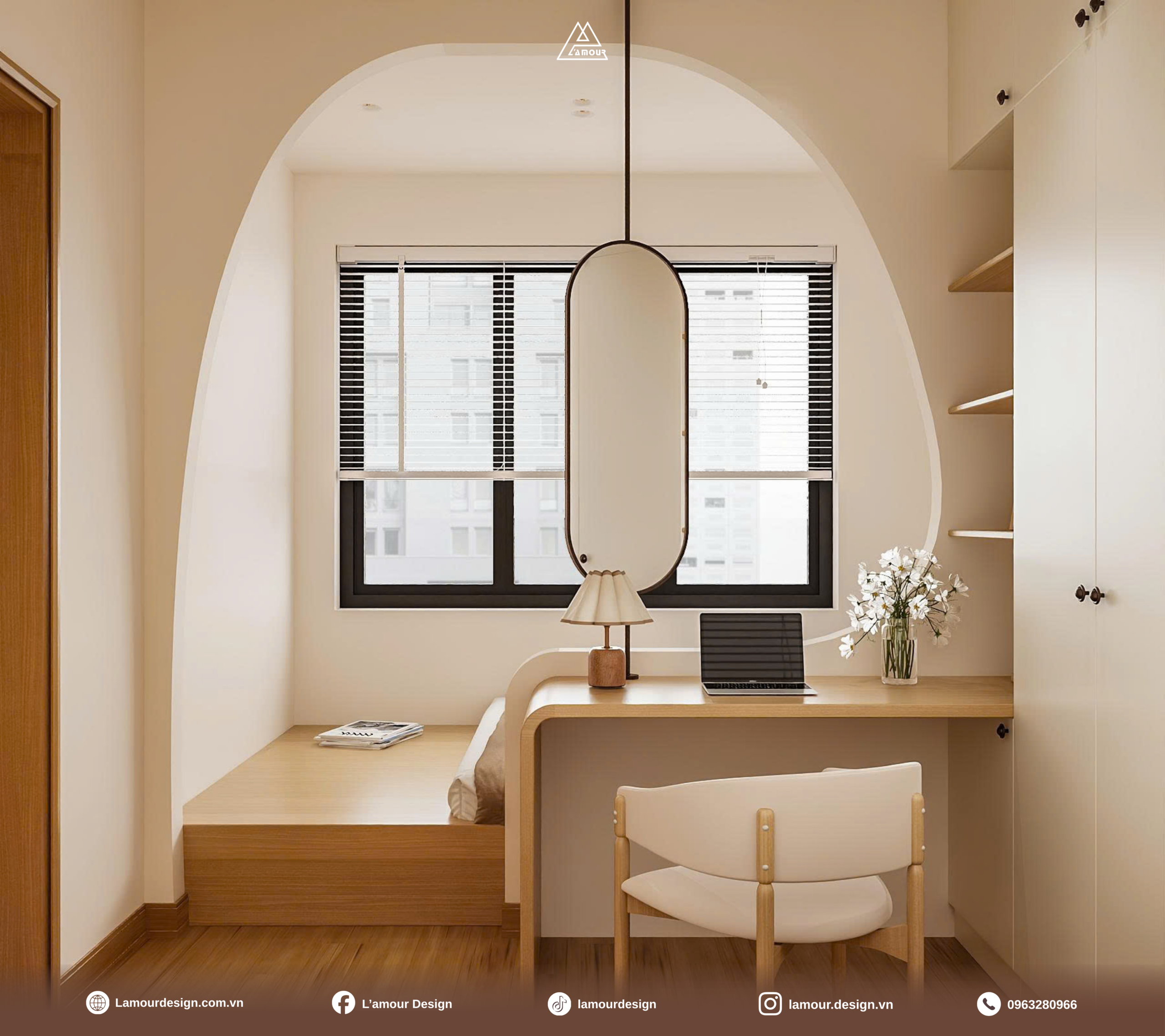 Bài viết dưới đây sẽ đi sâu vào những giải pháp “may đo” thực tế mà đội ngũ L’amour Design đã dành riêng cho căn hộ này. Từ hệ vòm kiến trúc ở phòng Master đến góc trà thiền bệt Panorama, tất cả đều được tính toán tỉ mỉ để biến mỗi mét vuông tại Fibonan trở thành một tác phẩm nghệ thuật đầy công năng